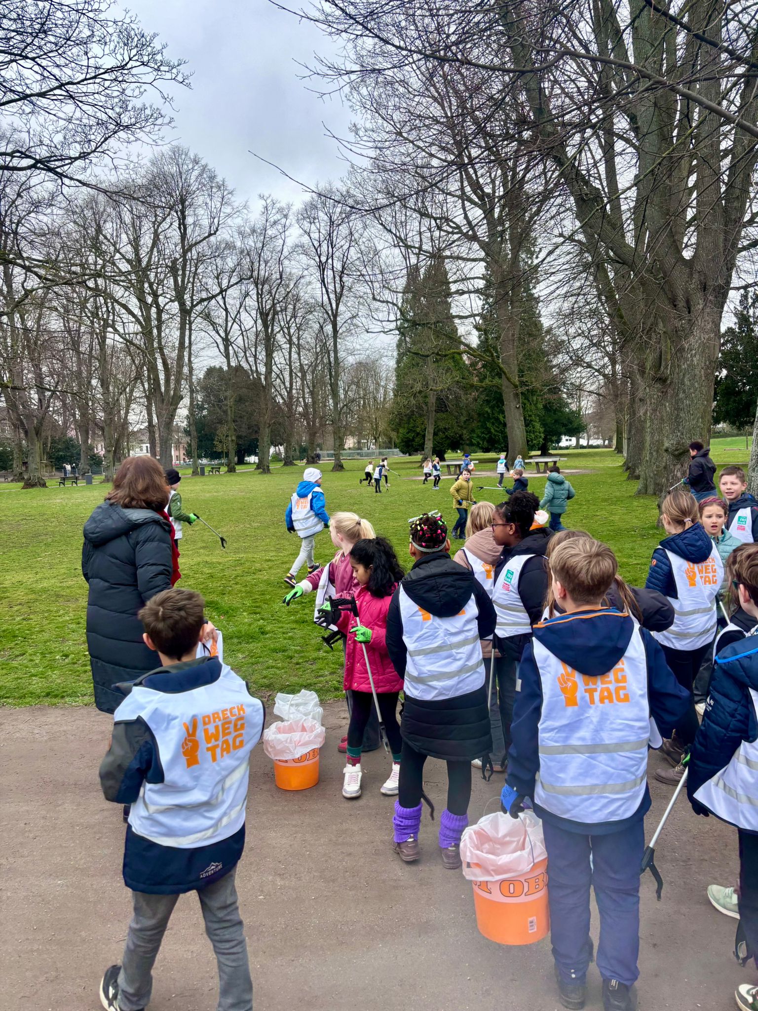 Auch in diesem Jahr engagieren wir uns mit allen Klassen am Dreck-weg-Tag und laufen mit Eimern und Zangen bewaffnet quer durch Bilk. Was man da so alles findet! An unserer Schule engagieren wir uns für die Umwelt und würden uns wünschen, dass der Müll dahin kommt wo er hingehört. Wir sortieren in der Schule auch unseren Müll und bringen das Papier zukünftig selbst zur großen Sammeltonne.